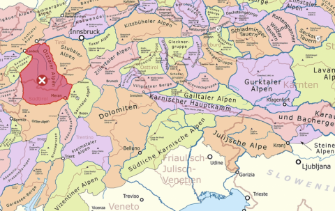 Die erste Variante, eine Karte, markiert das Skigebiet Südtirol und könnte als geografische Darstellung der Skigebiete in Kombination mit Datenebenen für Schneeproduktion und Beschneiung dienen. Dies ermöglicht es, regionale Unterschiede und Bedingungen innerhalb der Alpen auf einen Blick zu erfassen.