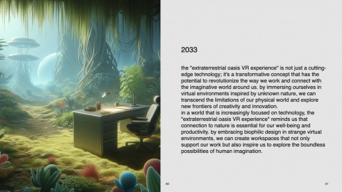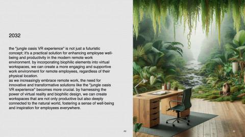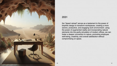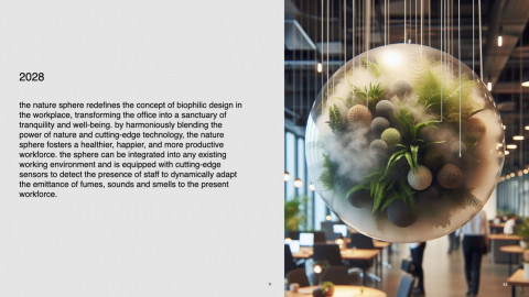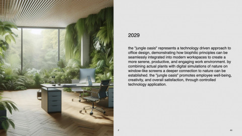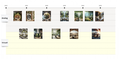 Anhand einer Roadmap machten wir uns initiale Gedanken wie die Arbeitswelt sich verändern könnte, wenn man biophile Prinzipien anwenden würde und diese mit der zunehmenden Technologisierung der Arbeitswelt kombinierte. Daraus wiederum ergab sich ein Startpunkt für unsere weiteren Überlegungen.