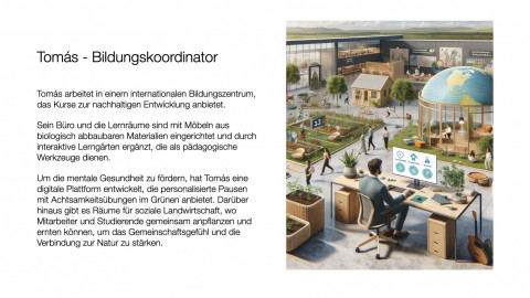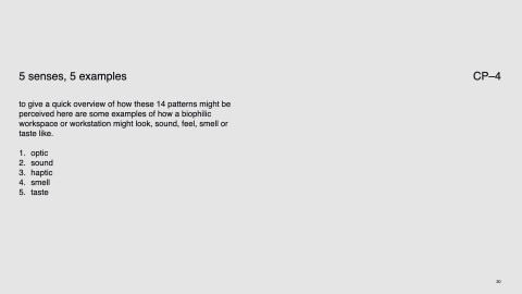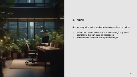 Abgeleitet aus den Prinzipien erarbeiteten wir 5 mögliche Arbeitsumgebungen, welche sich an den 5 Sinnen orientierten. Dadurch wurde es leichter zu greifen, wie explizit solche Umgebungen gestaltet werden könnten.