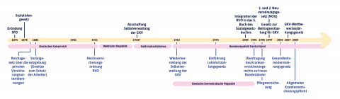 Die Geschichte der Krankenversicherung beginnt mit der Einführung unter Otto von Bismarck im Jahr 1883 als „Gesetz betreffend der Krankenversicherung der Arbeiter“. Dieses Gesetz galt allen Arbeitnehmenden unter einem Jahreseinkommen von 2000 Reichsmark (Industriearbeiter, Handwerks- oder Gewerbearbeitende), welche ab da krankenversicherungspflichtig waren. Getragen wurde die Versicherung zu zwei Dritteln durch die Arbeitgebenden und zu einem Drittel durch die Arbeitnehmenden.