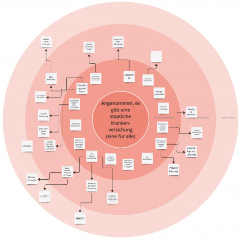 Um ein tieferes Verständnis zu einer offen Frage zu bekommen, wurde ein Futures Wheel ausgefüllt.