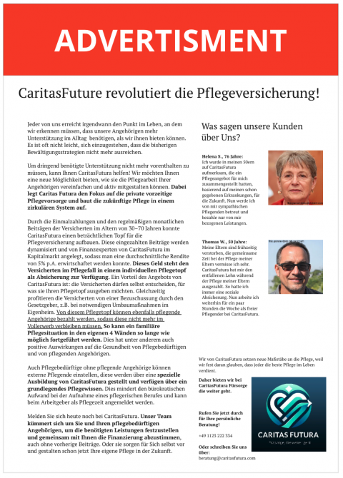 - “Unbekannter Millionär spendet 100 Tsd. Euro für Altenpflegeheim”