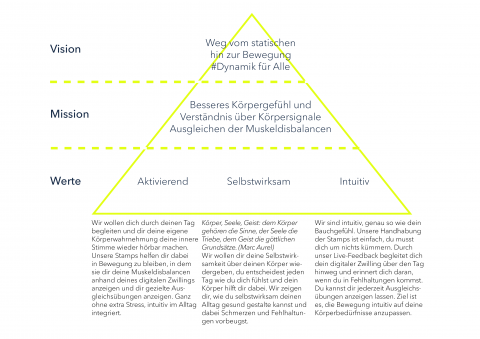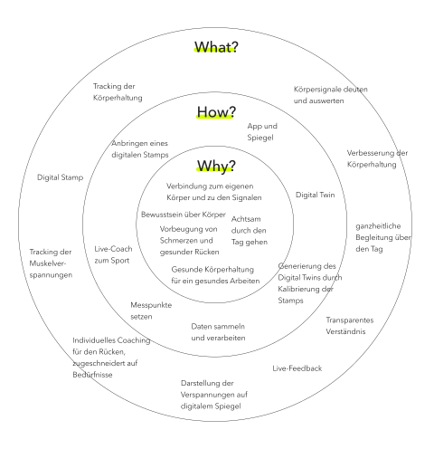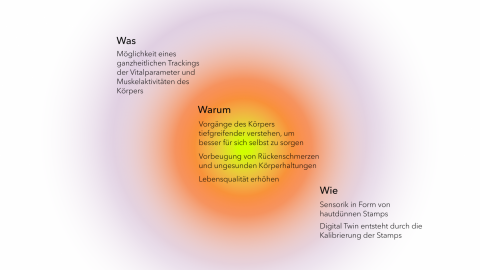 Mission: Wir wollen Menschen dazu befähigen, durch digitale Messpunkte und die Darstellung von Signalen in einem Digitalen Zwilling, Vorgänge des eigenen Körpers tiefgreifender zu verstehen, um für sich selbst zu sorgen und dadurch Schmerzen vorzubeugen.