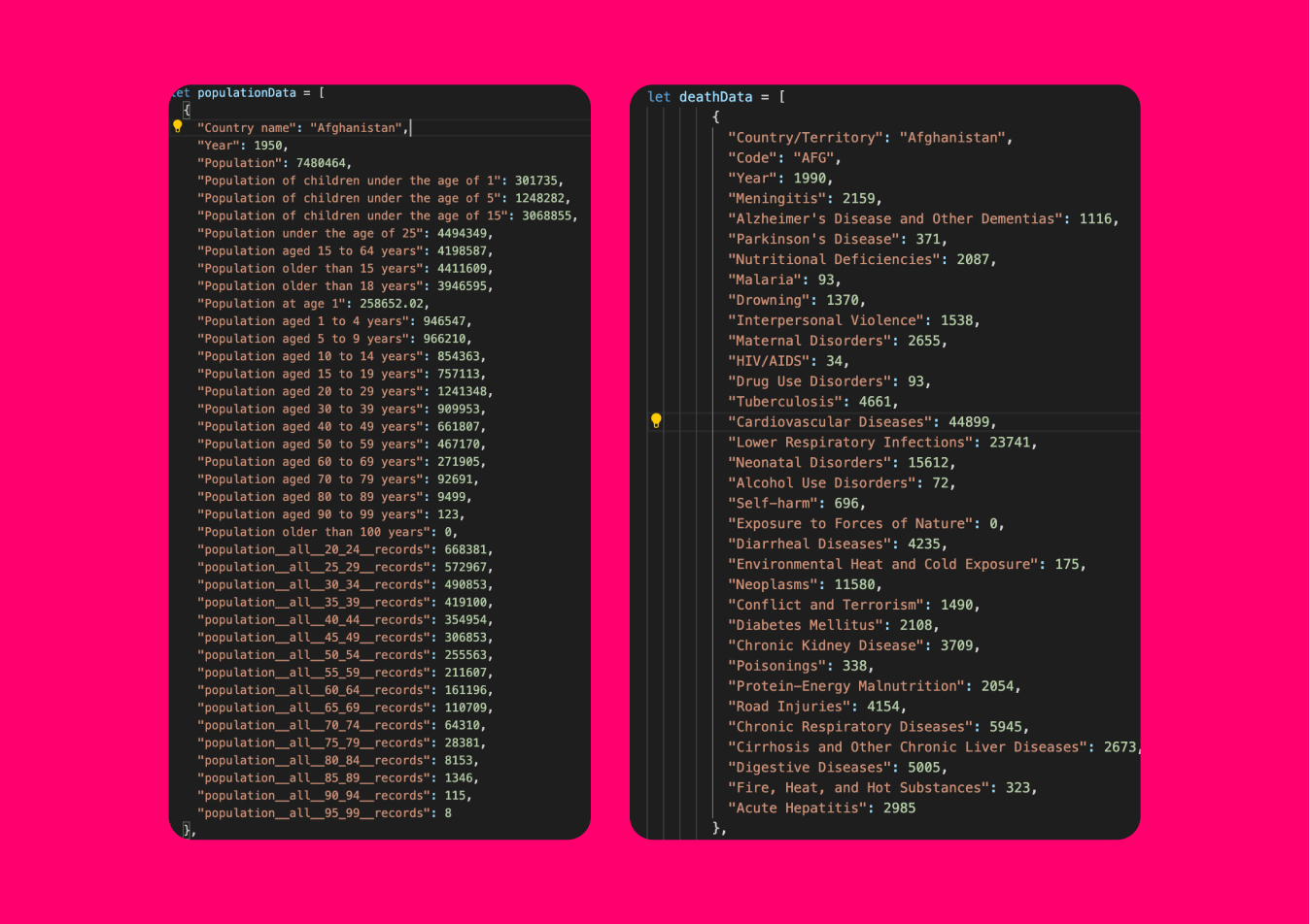 Um beide Datensätze effizient nutzen zu können, habe ich für jeden eine separate JavaScript-Datei erstellt. Diese Dateien enthalten die notwendigen Funktionen zur Verarbeitung und Visualisierung der Daten.