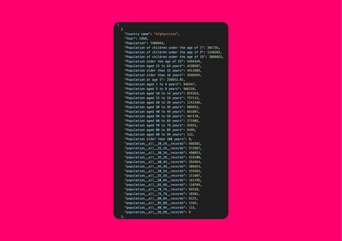 Um besser mit meinem Datensatz arbeiten zu können, habe ich die Datei von .csv in .json umgewandelt. Diese Umwandlung erleichterte die Handhabung der Daten im Projekt.