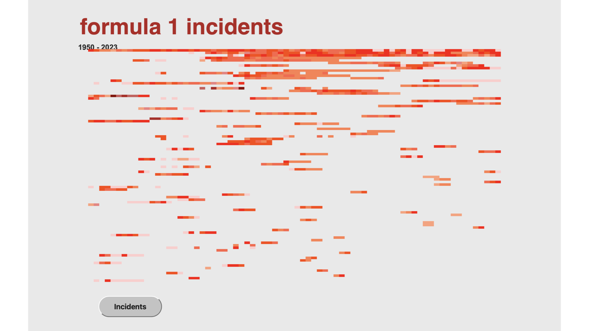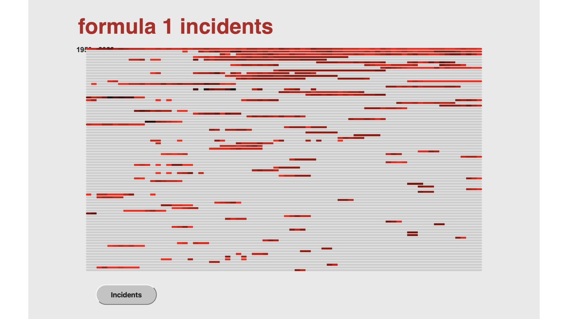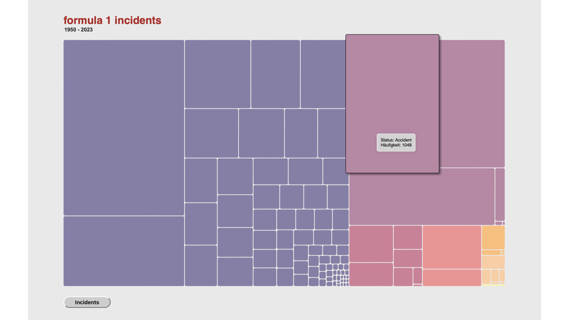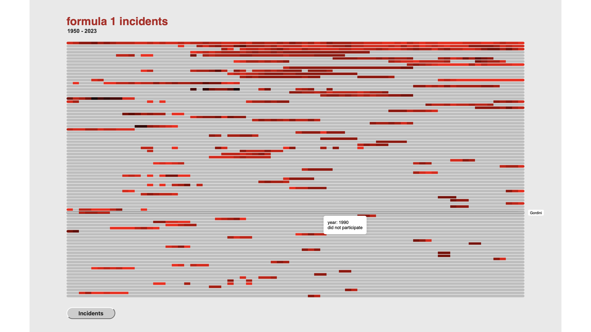 The first screen should show how many problems each constructor has had over the years. In addition, it would be helpful to give a general overview of how many problems have occurred in total and what types of problems there are.