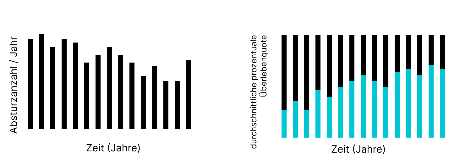 - Die Färbung beschränkte sich hier noch ausschließlich auf die Farben der Überlebensquote.
