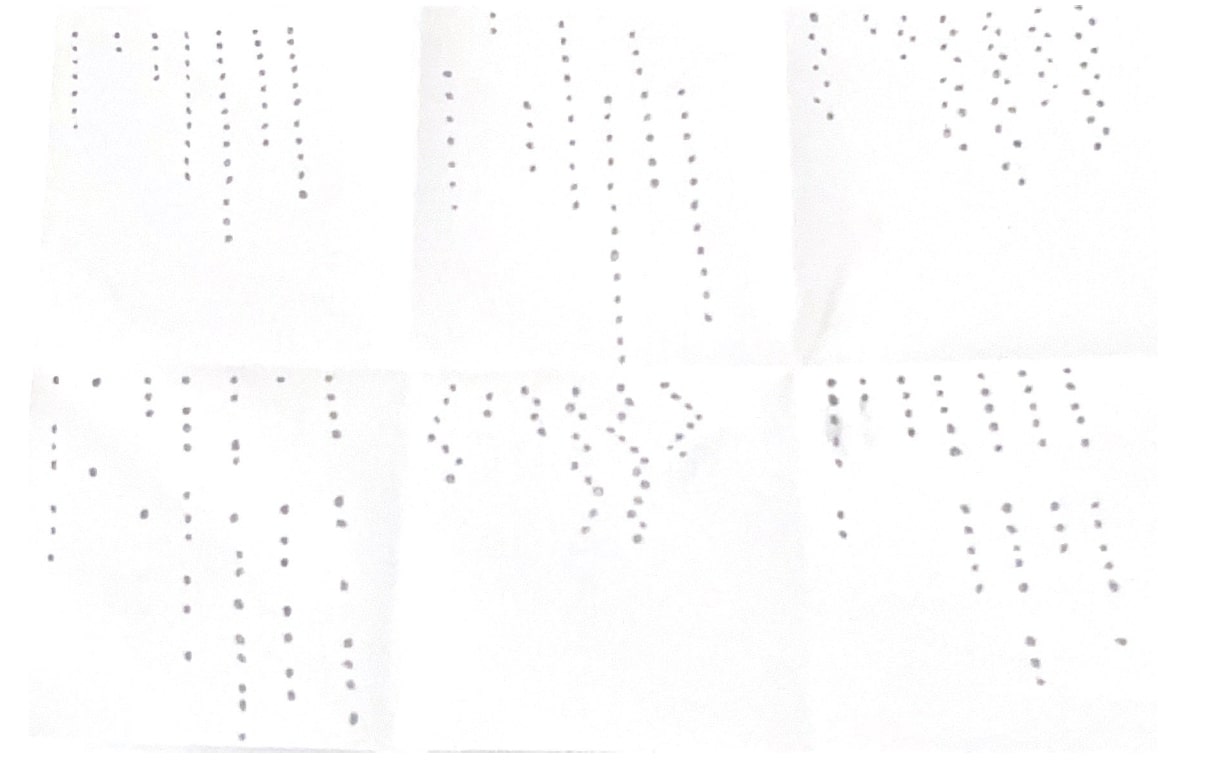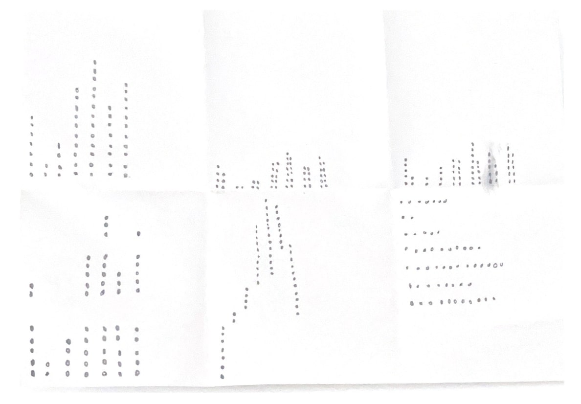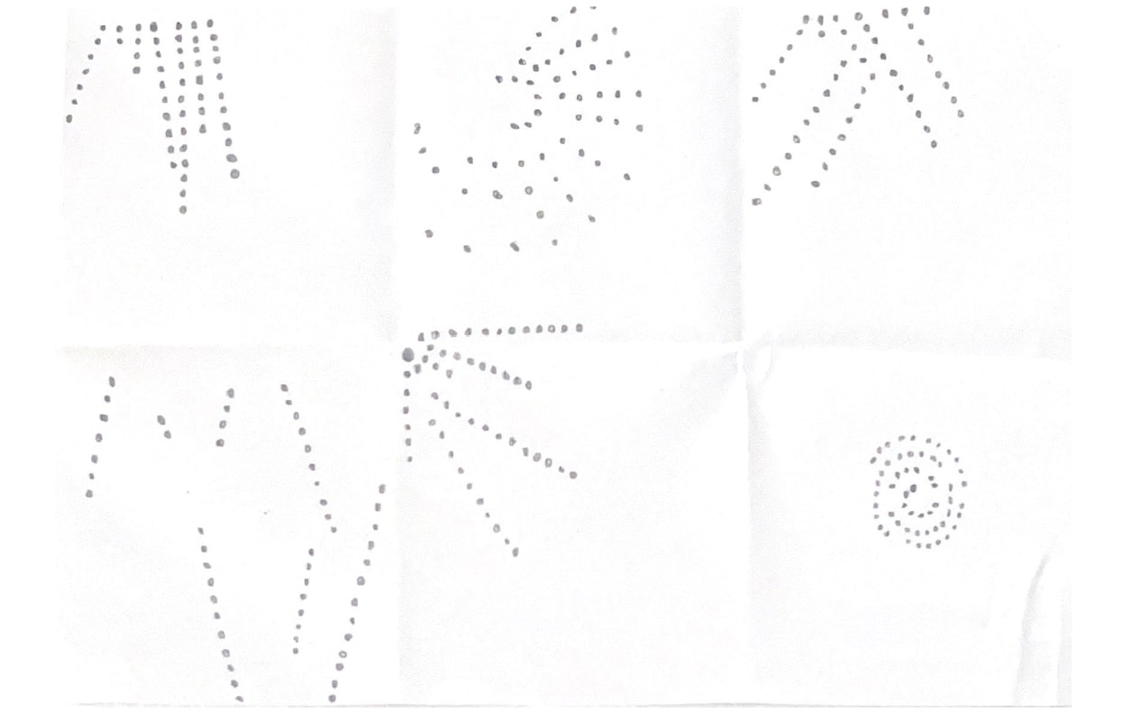 Unsere Aufgabe war es, für jede Wetterinformation einfache und prägnante Visualisierungen mit kleinen, gleich großen Punkten zu erstellen. Diese Visualisierungen sollten ausschließlich zur Darstellung der Daten dienen und im quadratischen Format skizziert werden.