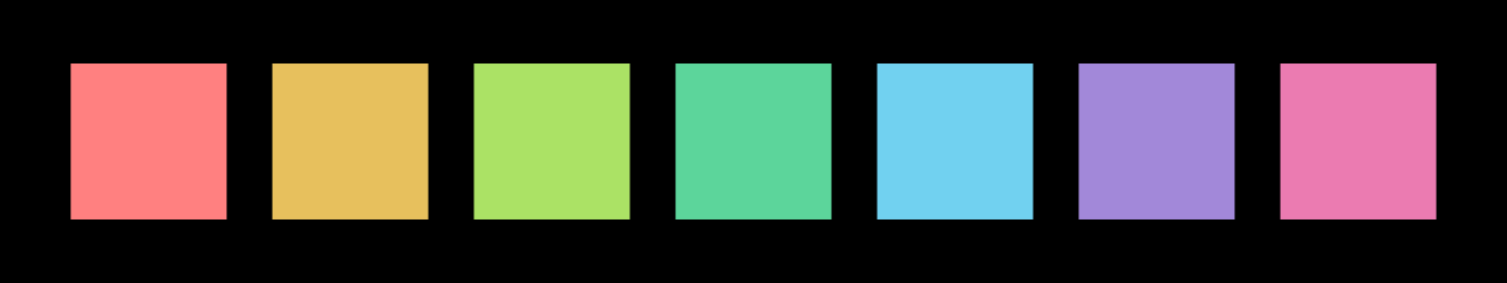 Bevor wir mit diesem Projekt gestartet haben, wurden einige Vorübungen gemacht, um ein Auge für Farben und Formen zu entwickeln. Die erste Aufgabe bestand darin, auf einem schwarzen Hintergrund eine Sammlung von sieben Farben zu erstellen. Die Farben sollten dabei gut voneinander zu unterscheiden sein und dennoch ein harmonisches Gesamtbild ergeben. Dabei war es wichtig, dass alle Farben gleich wichtig und präsent sind.