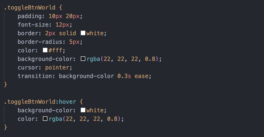 Nun ging es weiter mit den Toggle-Buttons. Ich wollte noch einen dritten Bildschirm mit der Weltkarte integrieren, wofür ich einen weiteren Button benötigte. Hier hatte ich zu Beginn Schwierigkeiten, dass diese Toggle-Buttons erst beim zweiten Klick die Ansicht wechselten. Daher erstellte ich nochmals neue Buttons, um dieses Problem zu lösen.