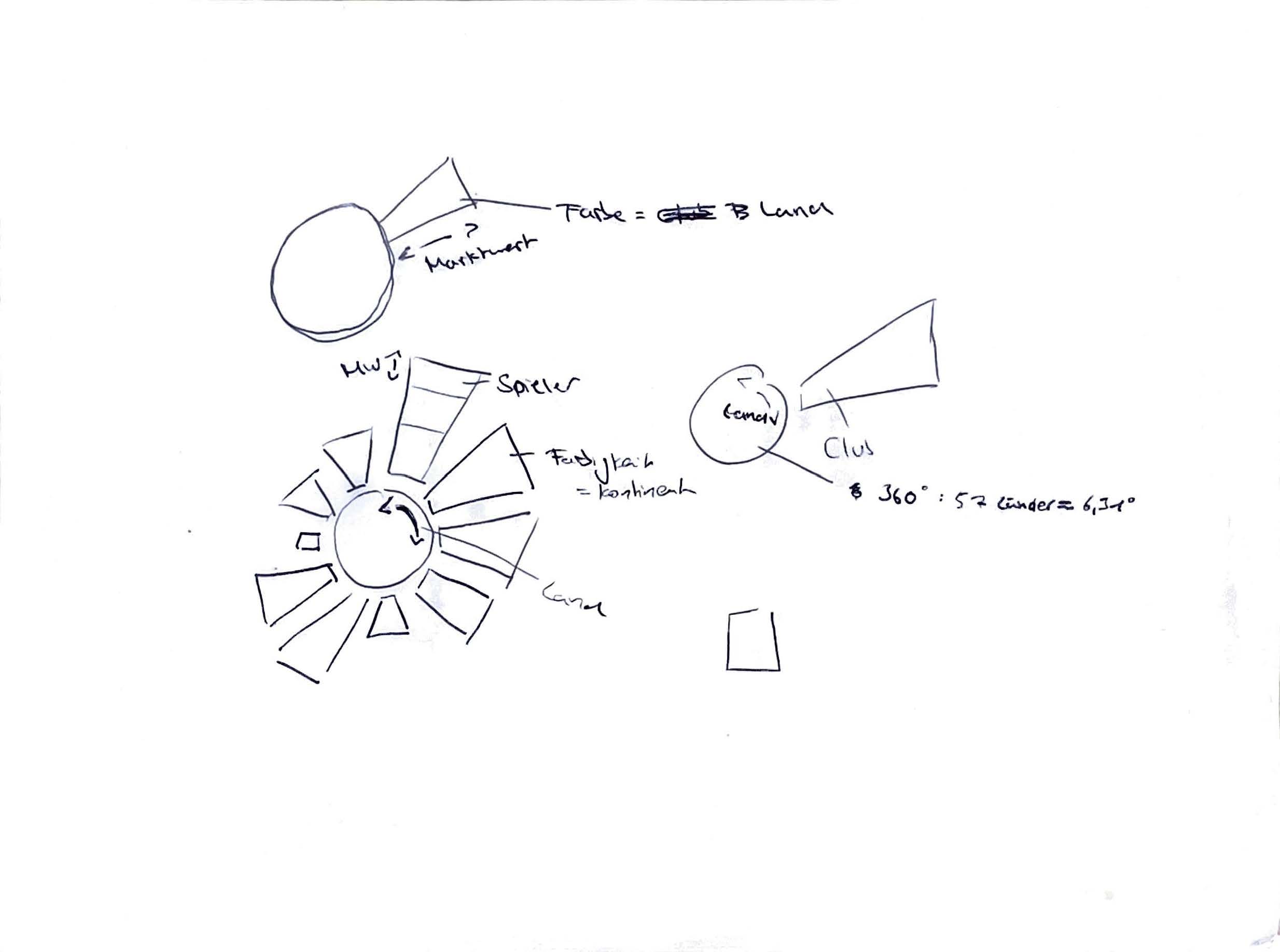 Mittig unten platziere ich einen nach links zeigenden Pfeil, der beim Klicken zwischen den Seiten navigiert. Nach dem Klicken dreht sich der Pfeil horizontal, um zu symbolisieren, dass er auch wieder zur vorherigen Seite zurückführt. Die Spielerkreise bewegen sich beim Wechseln der Seite an ihre neue Position.sition.