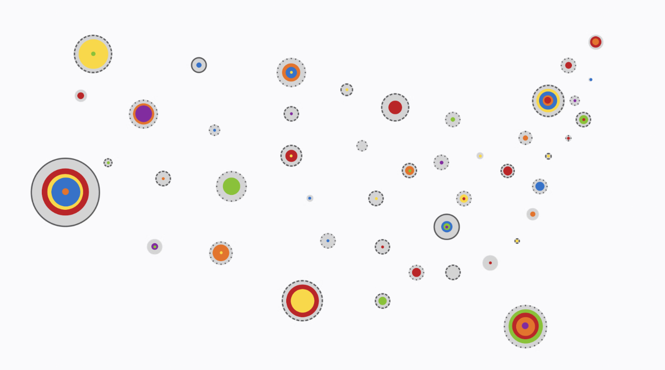 Zuerst habe ich für jeden Bundesstaat einen Punkt auf die Karte gesetzt. Ein Punkt sind alle Bienenkolonien, die es in diesem Staat gibt.
