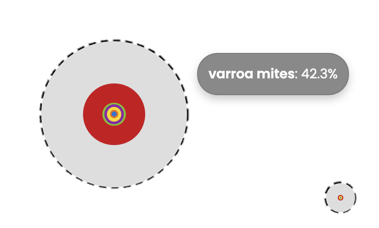 Beim Hovern über die bunten Punkte erscheint ein Label mit Informationen über die Art des Befalls, sowie den Anteil, den er ausmacht.