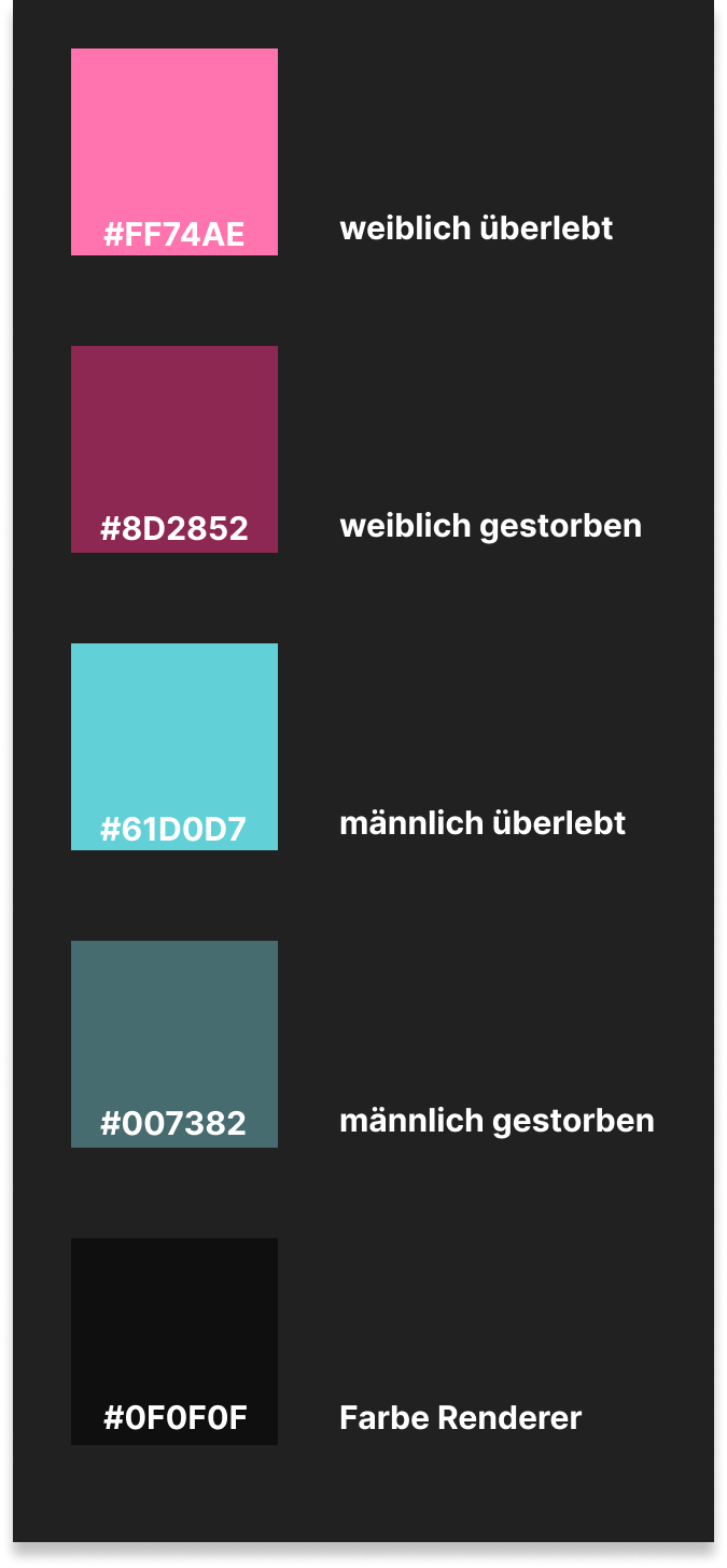 Für die Visualisierung des Titanic Datensatzes habe ich mich für folgende Farben entschieden: