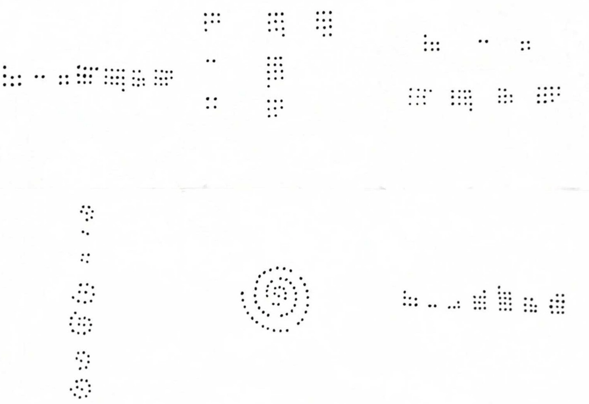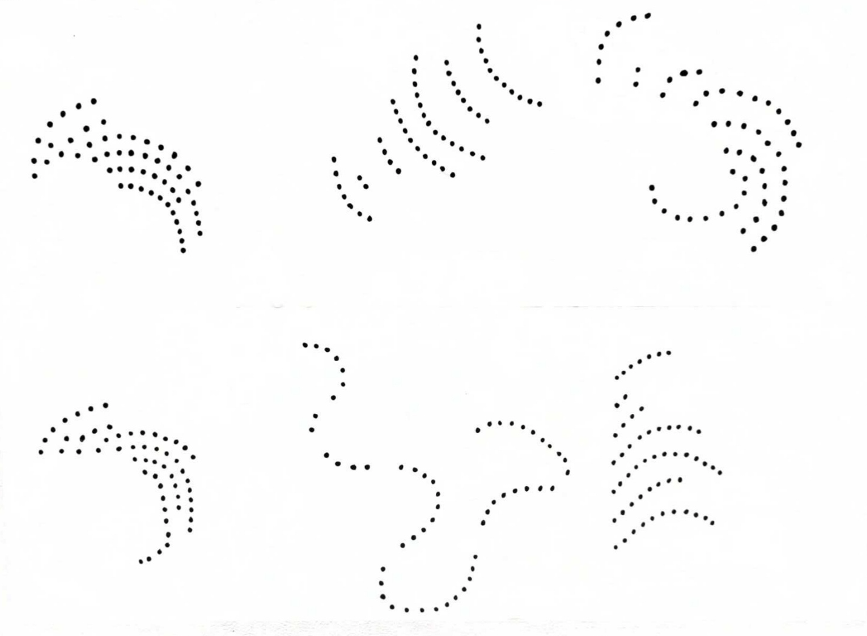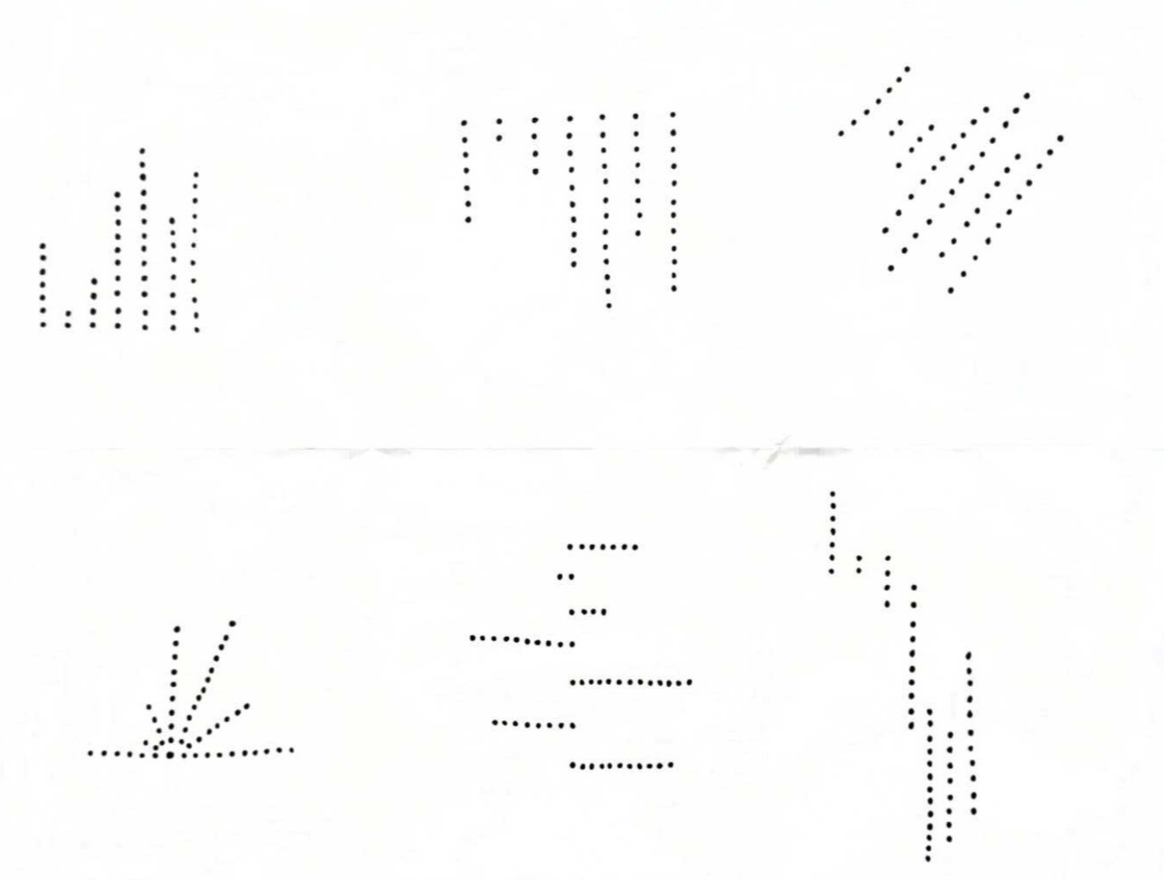 Gegeben war die Datenreihe: 7, 2, 4, 10, 13, 8, 11. Diese Datenreihe soll nun unterschiedliche Wetterinformationen von sieben aufeinanderfolgenden Tagen repräsentieren. Die drei Wetterinformationen sind Sonnenstunden, Niederschlagsmenge und Temperatur. Nun war die Aufgabe, mit einem schwarzen Stift für jede Wetterinformation eine möglichst einfache, aber prägnante und semantisch aufgeladene Datenvisualisierung ausschließlich mit kleinen Punkten zu zeichnen.