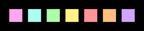 Als Erstes sollten wir auf einem schwarzen Hintergrund eine Sammlung von sieben Farben erstellen. Die Farben sollten gut unterscheidbar sein, aber auch ein harmonisches Ganzes bilden. Alle Farben sollten gleich wichtig sein.