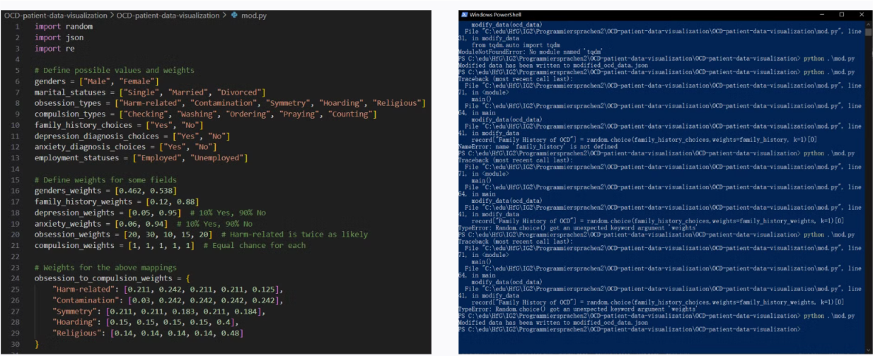 Um dieses Problem zu beheben, habe ich die Daten modifiziert, um eine gleichmäßige Verteilung zu vermeiden. Dazu habe ich ein Python-Skript entwickelt, das die Anteile der Daten durch prozentuale Anpassungen erhöht oder reduziert hat.