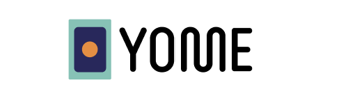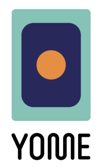 Die Bildmarke setzt sich zusammen durch die drei Bestandteilen des Yome-Ökosystems: den physischen Büchern, symbolisiert durch ein minimal abgerundetes Rechteck, den Hörbüchern, symbolisiert durch ein stark abgerundetes, kleineres Rechteck, und Hörbüchern, die durch einen kleinen, symmetrischen Kreis, der Konnotationen mit einem Play- oder Aufnahmebutton hervorrufen soll.