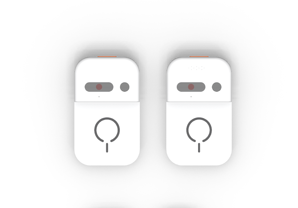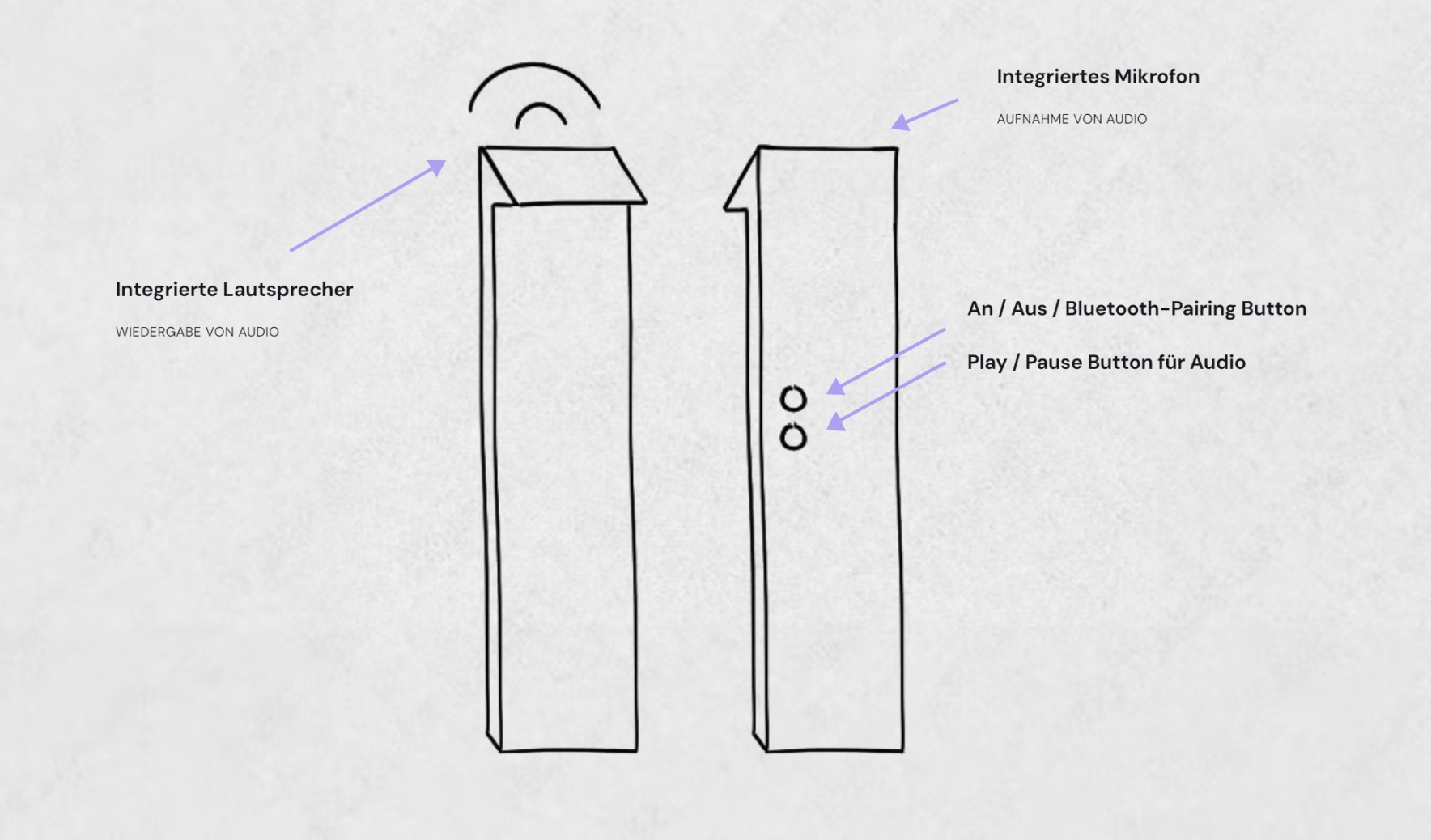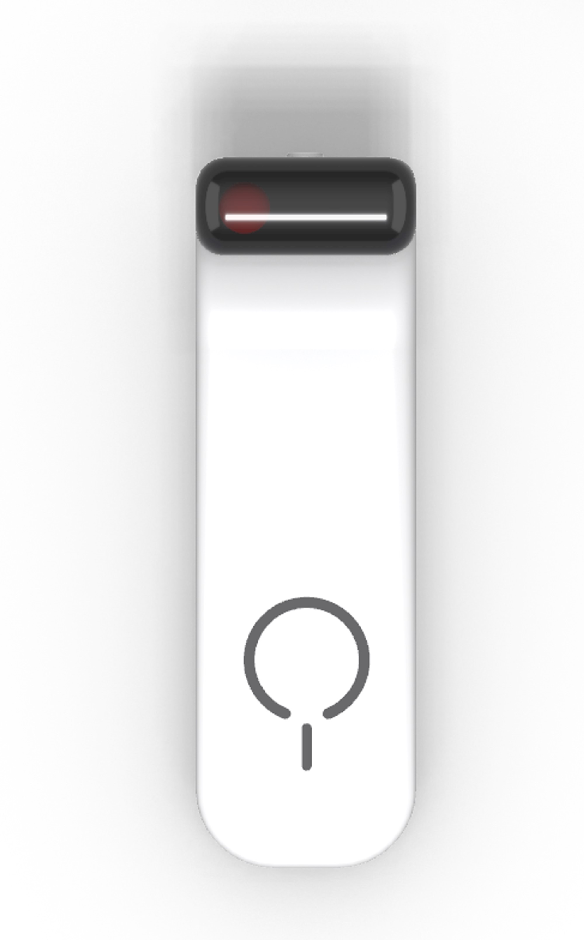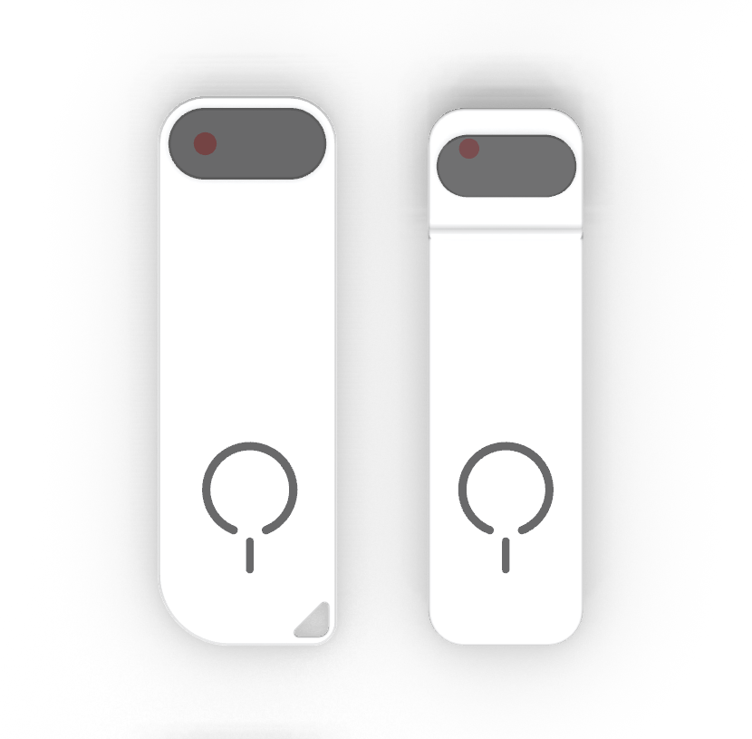 In diesen Entwürfen ist das Device kompakt gehalten. Die Magnete sind visuell hervorgehoben, während die Sensoren dezent hinter Glas angelegt sind. Oben auf dem Device sind die Funktionen wie An/Aus und Bluetooth per Knopfdruck verfügbar.