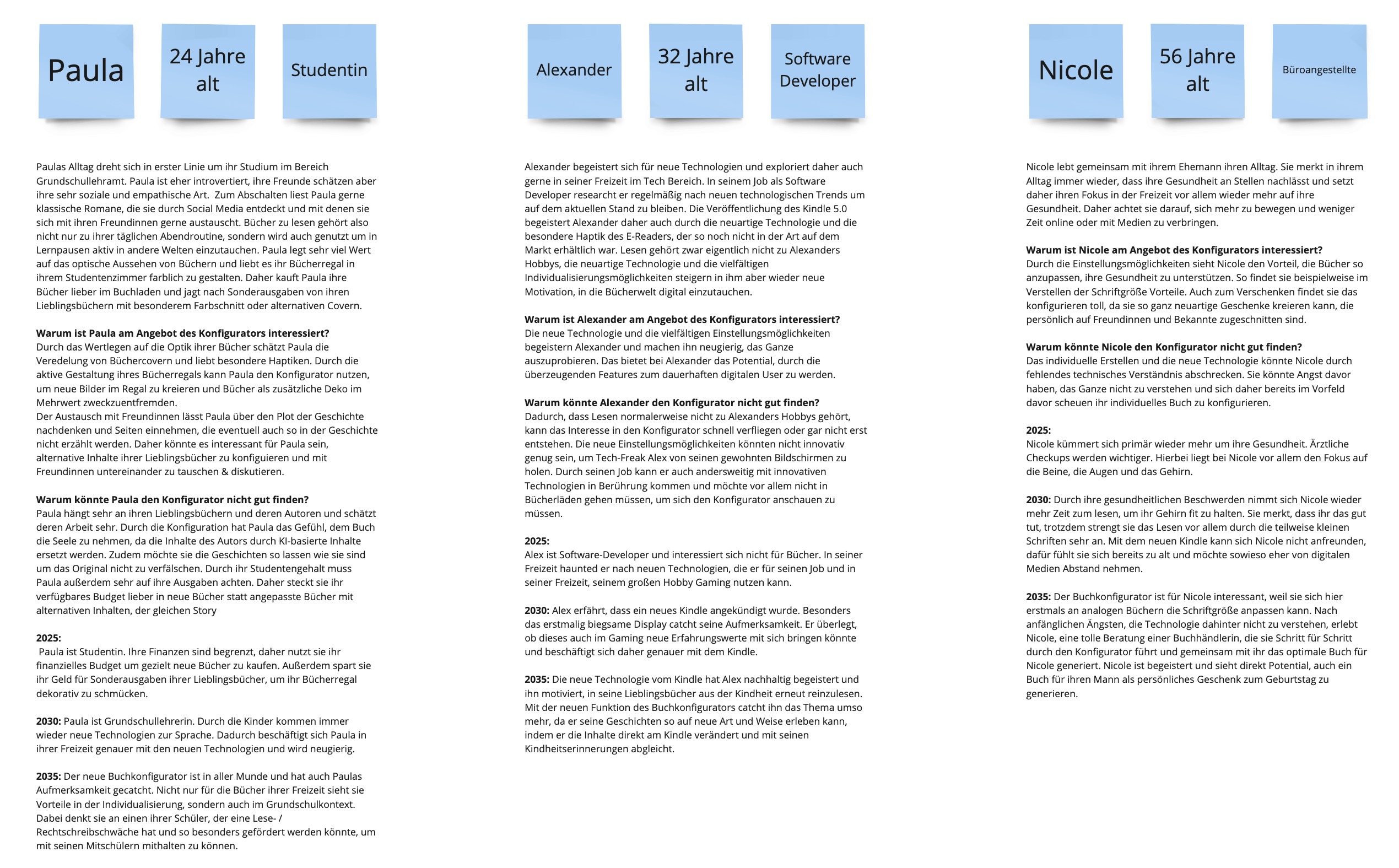 Zusätzlich werden Future Personas erstellt, welche in die vorgestellte Welt eingepasst werden und ihr Alltag wird beschrieben.