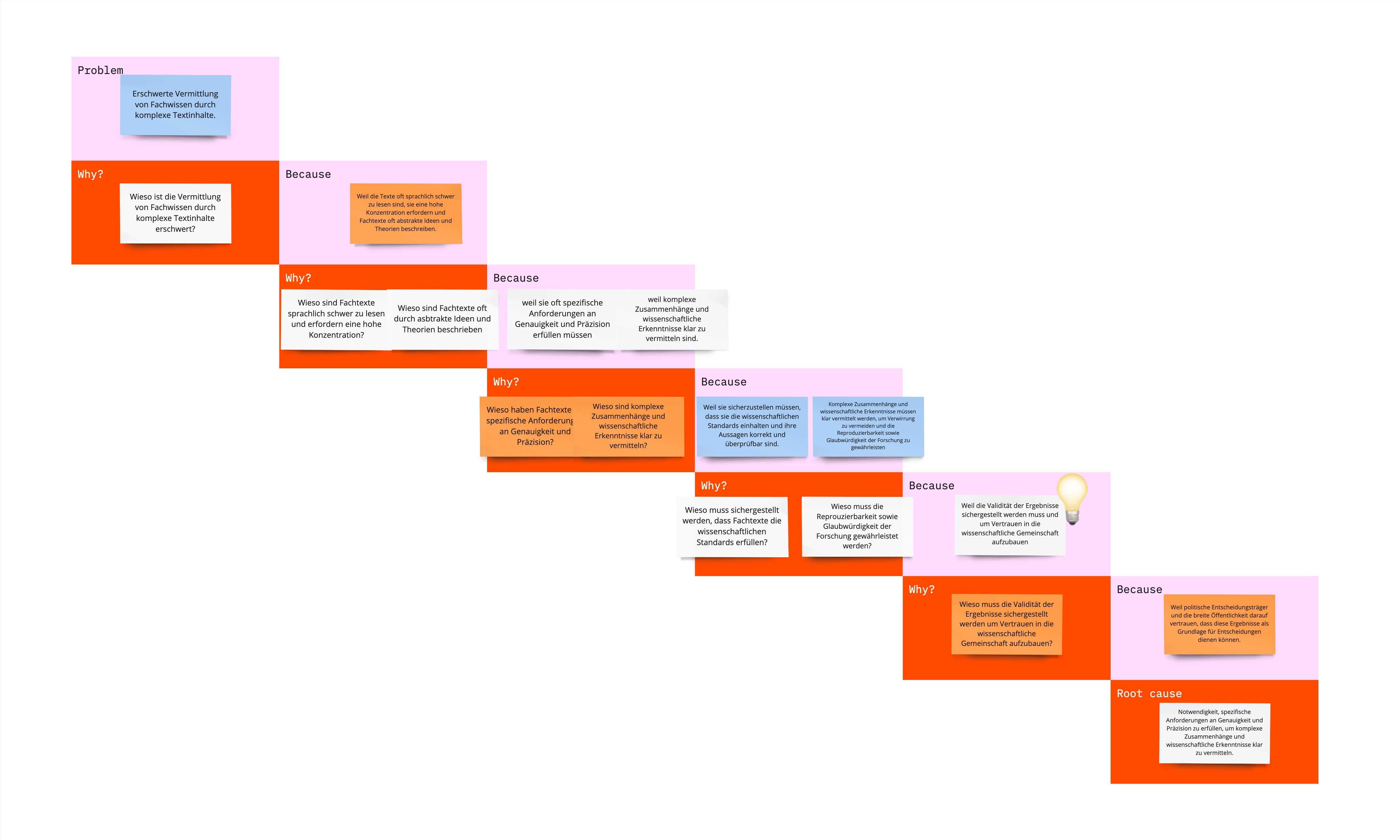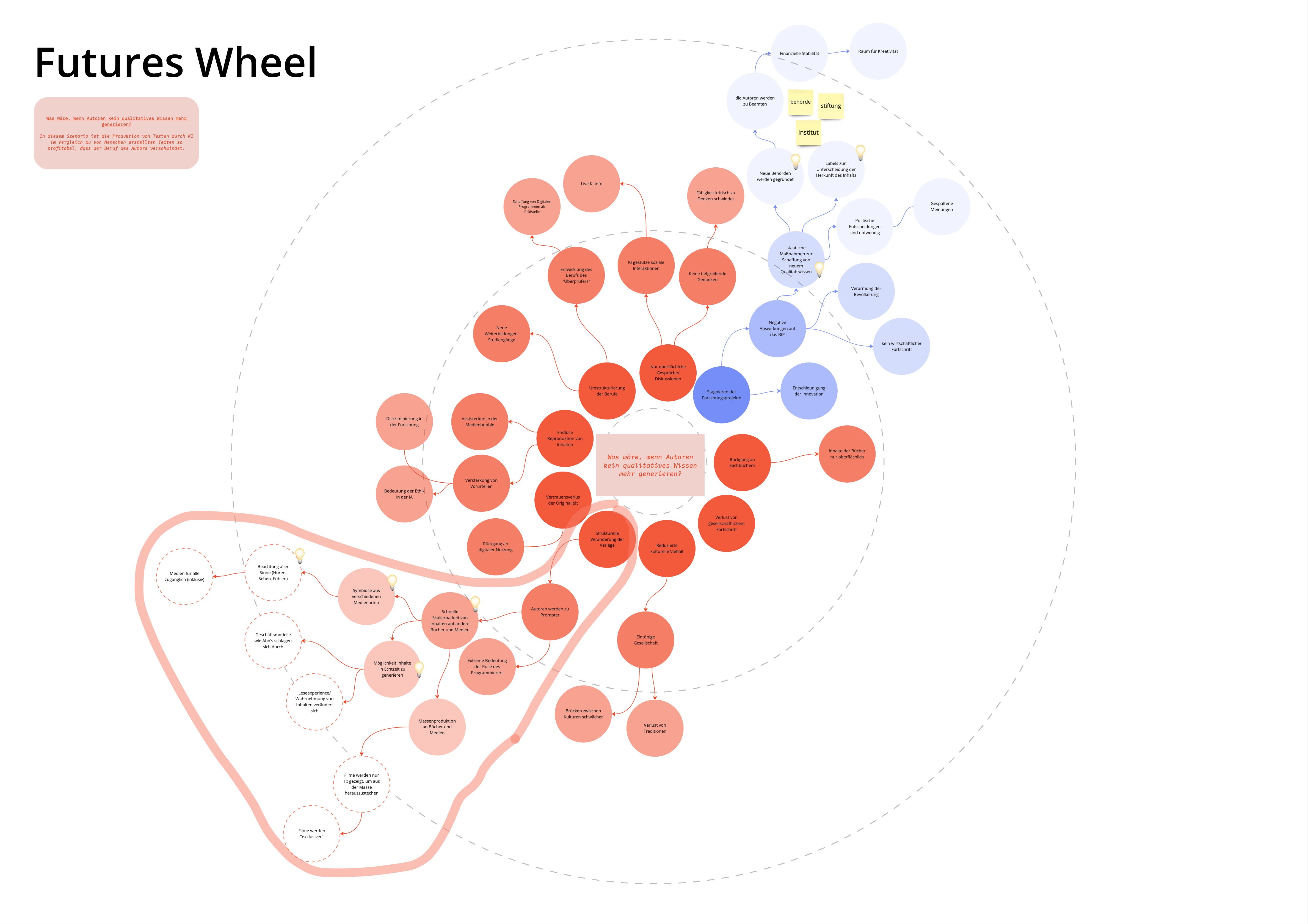 Das finale Thema entschied sich durch den Strang „Stagnieren der Forschungsprojekte“ des „Futures Wheel“. Damit fokussierten wir uns auf die Fragen: