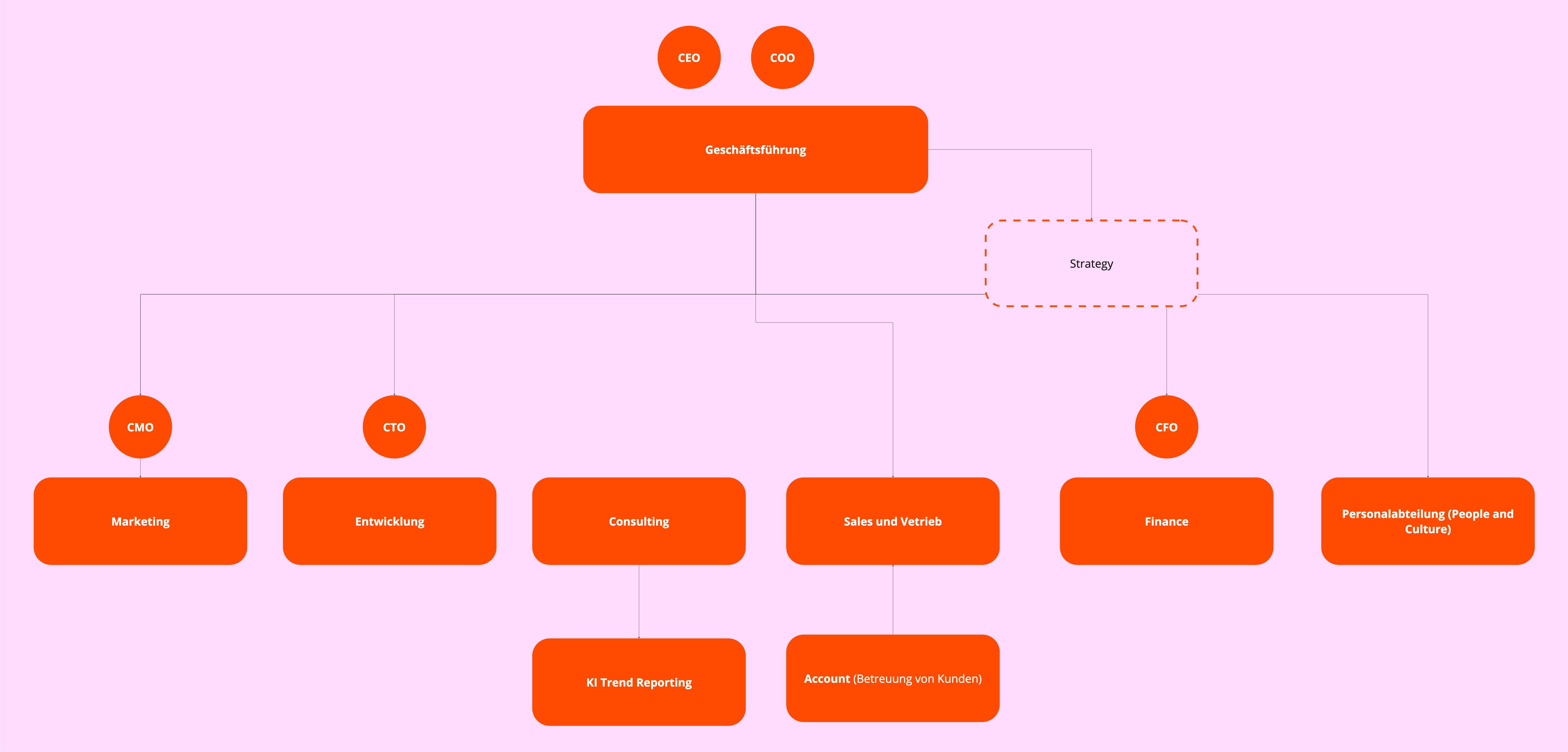 Auf Basis des Business Model Canvas, formulierten wir nötige Abteilungen und Strukturen des Instituts. Dabei braucht es für die erste Gründungsphase folgende Abteilungen: