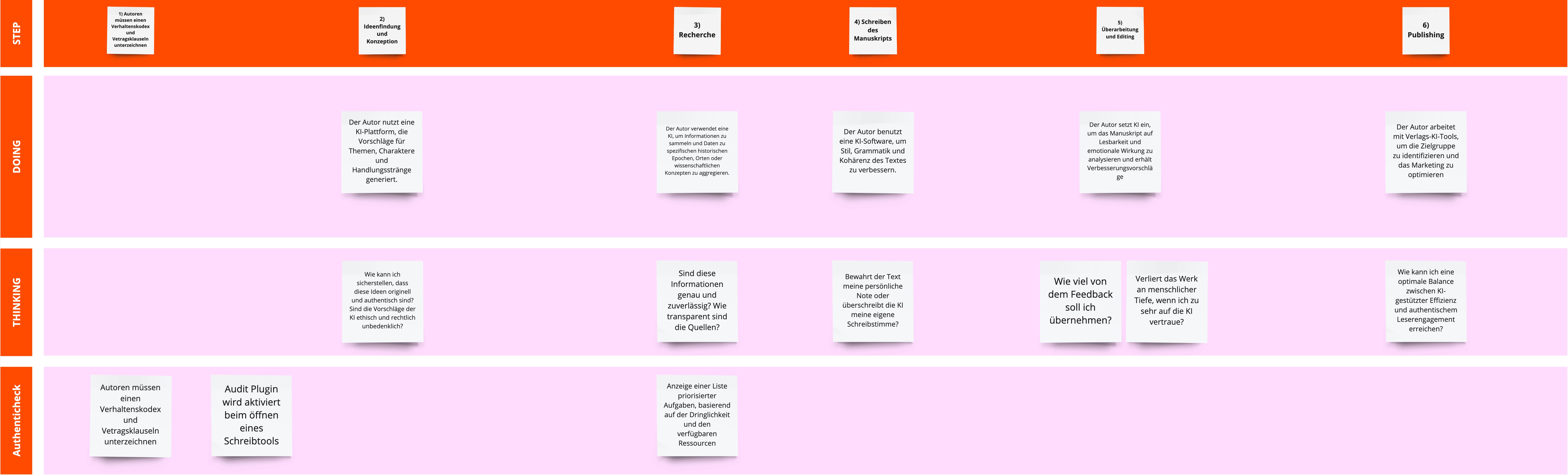 Das Audit-Tool ist eine Maßnahme des Instituts. Es wird genutzt, um die Arbeit der AutorInnen zu erleichtern, indem sie den Einsatz der KI ohne Aufwand nachverfolgen können. Der USP des Produkts ist die Automatisierung und das automatische Versenden des Buches an den jeweiligen Verlag umfasst. Das Audit-Tool ist Teil eines Abo-Modells und soll auf dem Computer des Nutzers installiert sein. Es soll übergreifend auf mehreren Endsystemen funktionieren. Es greift im Backend auf verwendete Programme zu und kann durch die Einführung von Metadatenstandards unterschiedliche Metadaten tracken. Das Tool soll zur Einführung im Jahr 2027 auf Desktop-Endgeräten funktionieren und ist skalierbar sowie ab 2025 auch in VR nutzbar.