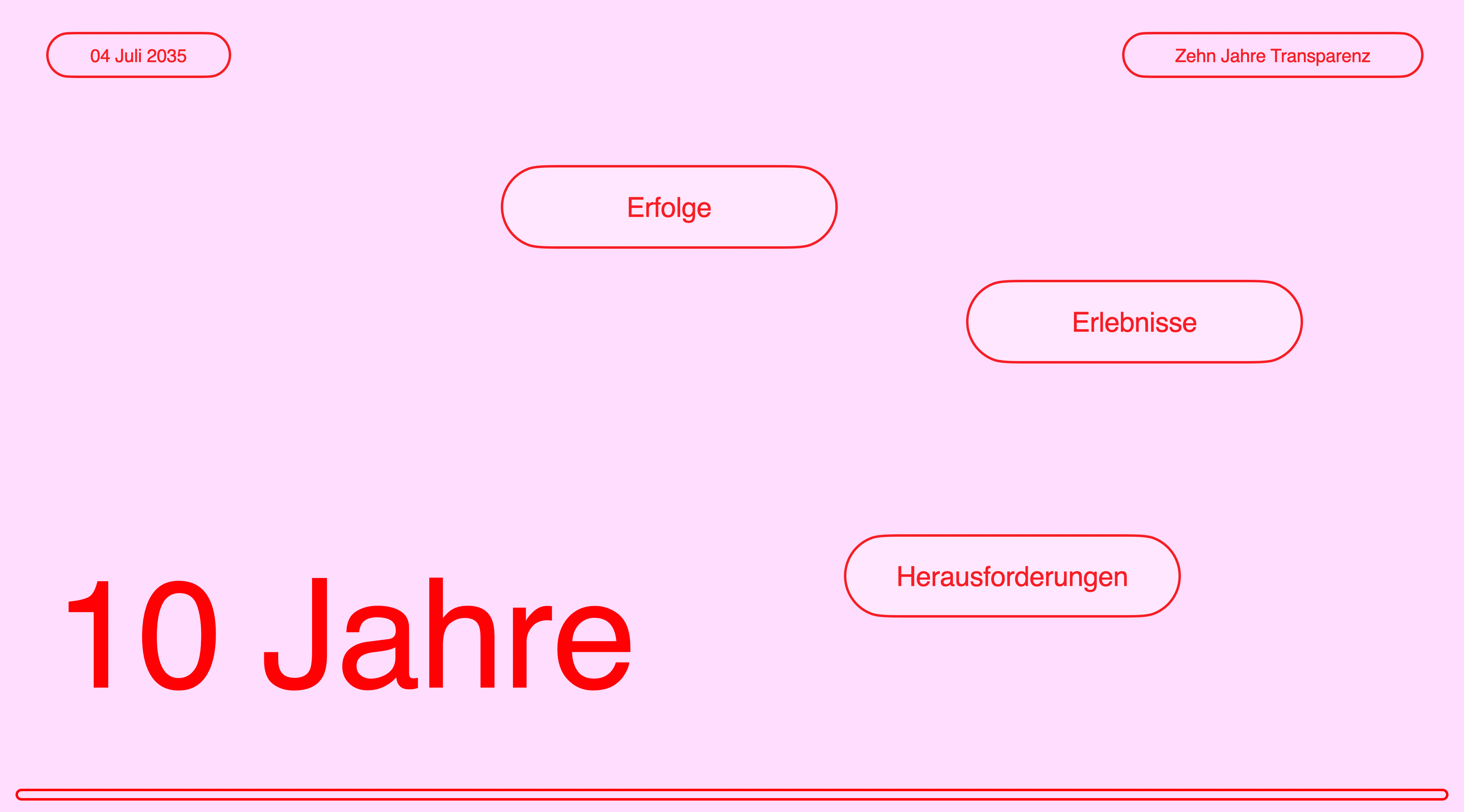 In der finalen Präsentation begrüßen wir alle Zuschauer zur Feier unseres 10. Jubiläums. Wir möchten eine Jubiläumsfeier inszenieren. Die Zuschauer sind Mitglieder und Mitarbeitende des Börsenvereins des Deutschen Buchhandels. Wir starten mit einem Rückblick auf die vergangenen Jahre, erklären unsere Motivation und erwähnen unsere Meilensteine wie den ersten Einsatz des Audit-Tools und des KI-Siegels. Stimmen aus der Gesellschaft sollen das Szenario verdeutlichen. Auch kritische Stimmen thematisieren wir, denn wir bieten keine fehlerfreie Lösung, sondern eine, die eine Bewegung schafft. Das Jubiläumsvideo zeigen wir am Ende der Präsentation als First Release, bevor es veröffentlicht wird.