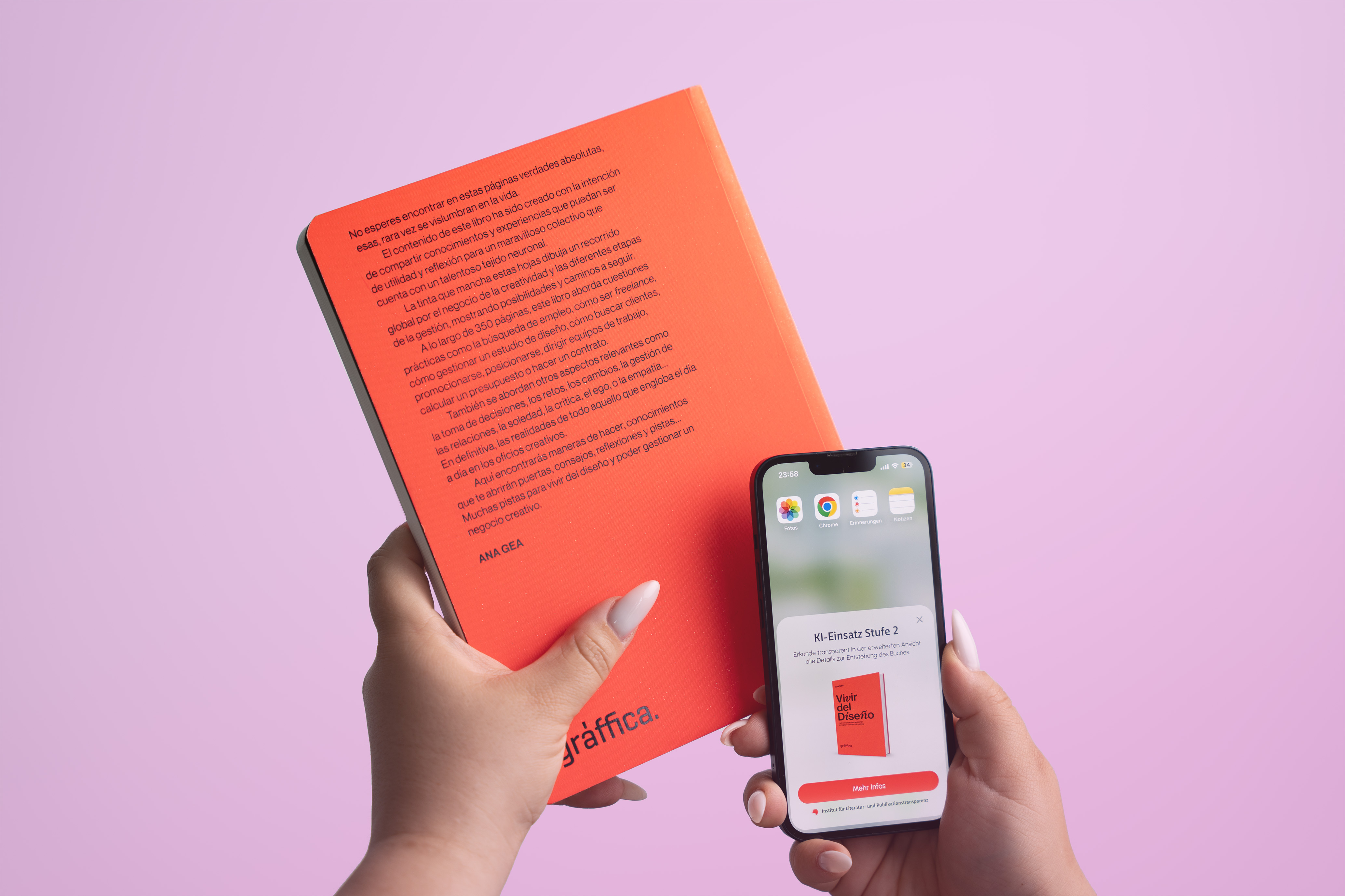 Die verfolgten Metadaten des Audit-Tools werden an die jeweiligen Verlage gesendet, die mit Hilfe des Instituts interaktive Labels generieren und drucken können. Diese Bücher sind dann in einer Datenbank gespeichert, die über eine Website für die Leser*innen zugänglich ist. Die Website kann durch Auflegen des Handys auf die Buchrückseite aufgerufen werden.
