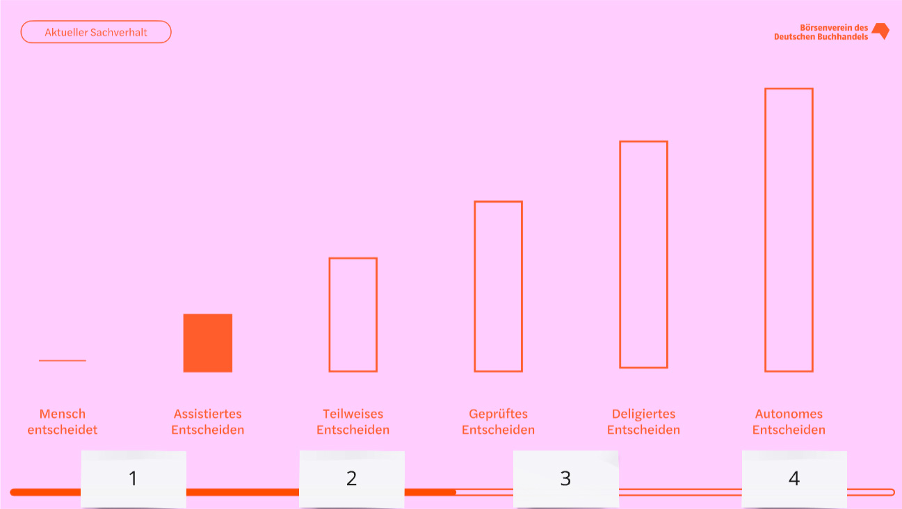 Im Buch-Erstellungsprozess lassen sich sechs Hauptphasen unterscheiden: Recherche, Ideenfindung, Überprüfung, Gestaltung, Produktion und Übersetzung. Der Durchschnitt des Automatisierungsgrades in jeder Phase ergibt den auf der Rückseite des Buches angegebenen Durchschnittswert. Diese Informationen werden auch in digitaler Form auf Online-Einkaufsplattformen und in E-Books zugänglich sein.