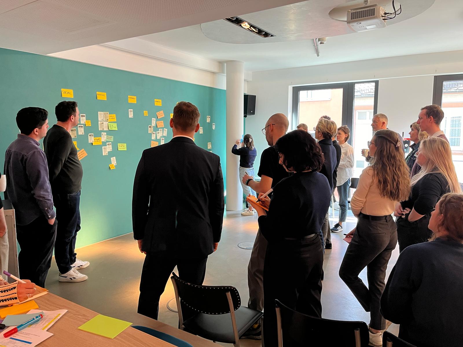 Am 11. April fand der erste große Austausch mit dem Börsenverein des Deutschen Buchhandels statt. In einem Workshop tauschten wir, die Studierenden, uns mit sieben Mitgliedern über die Transformation der Lesekultur und der Buchlandschaft aus. Das Programm hatte zwei Teile: Im ersten Teil besprachen wir die STEEP-Analyse und das Horizon Scanning. Die Mitglieder des Börsenvereins waren optimistisch bezüglich der Zukunft und zeigten eine höhere Selbstwirksamkeit durch aktive Mitgestaltung. Im zweiten Teil führten wir in Kleingruppen mit zwei Vertretern des Börsenvereins die Methode des Future Wheels durch, was zur Formulierung unterschiedlicher Ideen mit der Methode Name It führte.