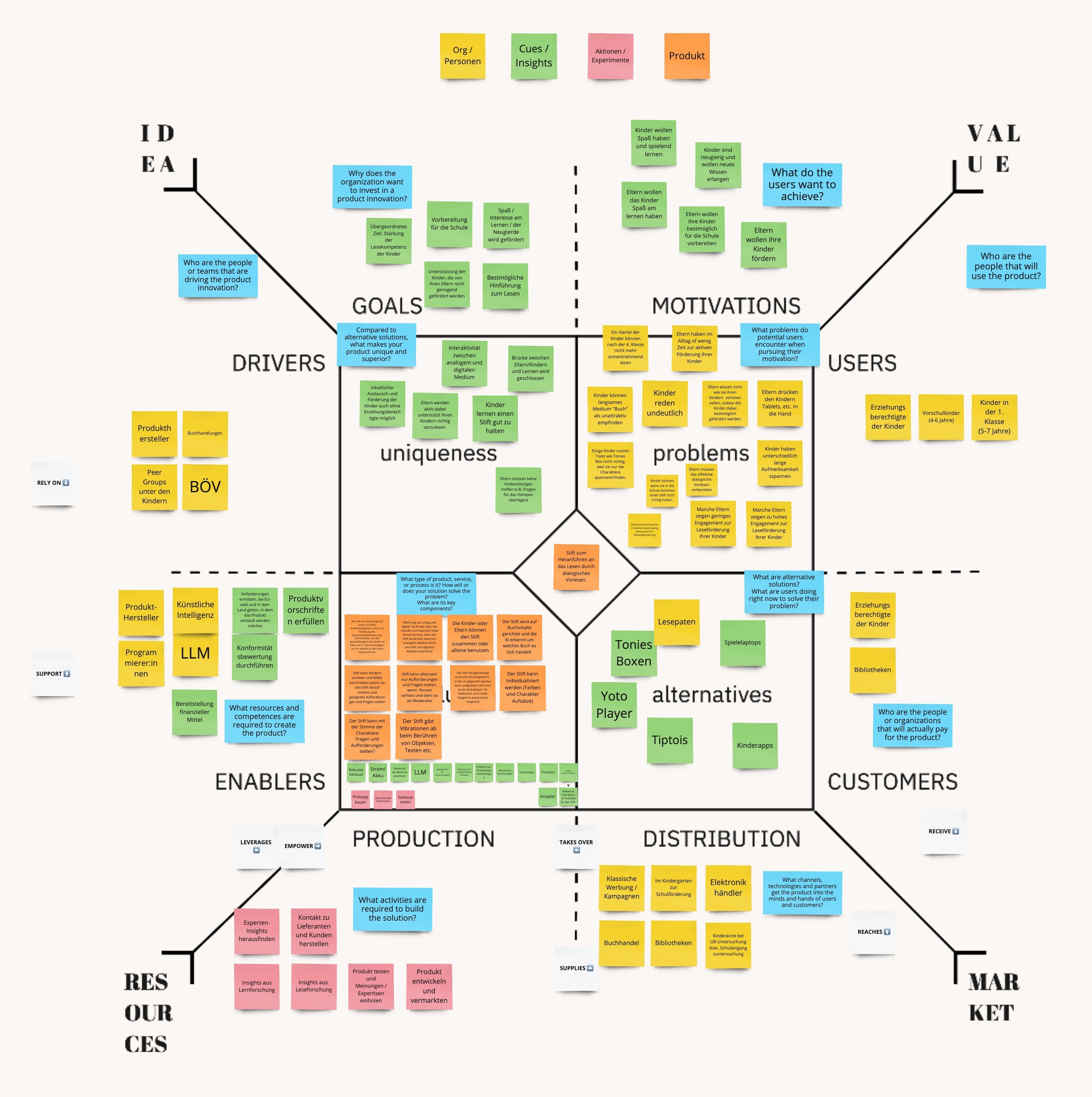 Im Anschluss an den Workshop wurde der Fokus im Rahmen des Product Fields erneut auf die Leseförderung und das Dialogische Vorlesen gelegt. Das Product Field ist im Wesentlichen „ein generischer Rahmen für die Entwicklung und Anpassung von spezifischen Modellen für Produktinnovationen” (Frahm/Schieben/Wopperer-Beholz, o. A.).