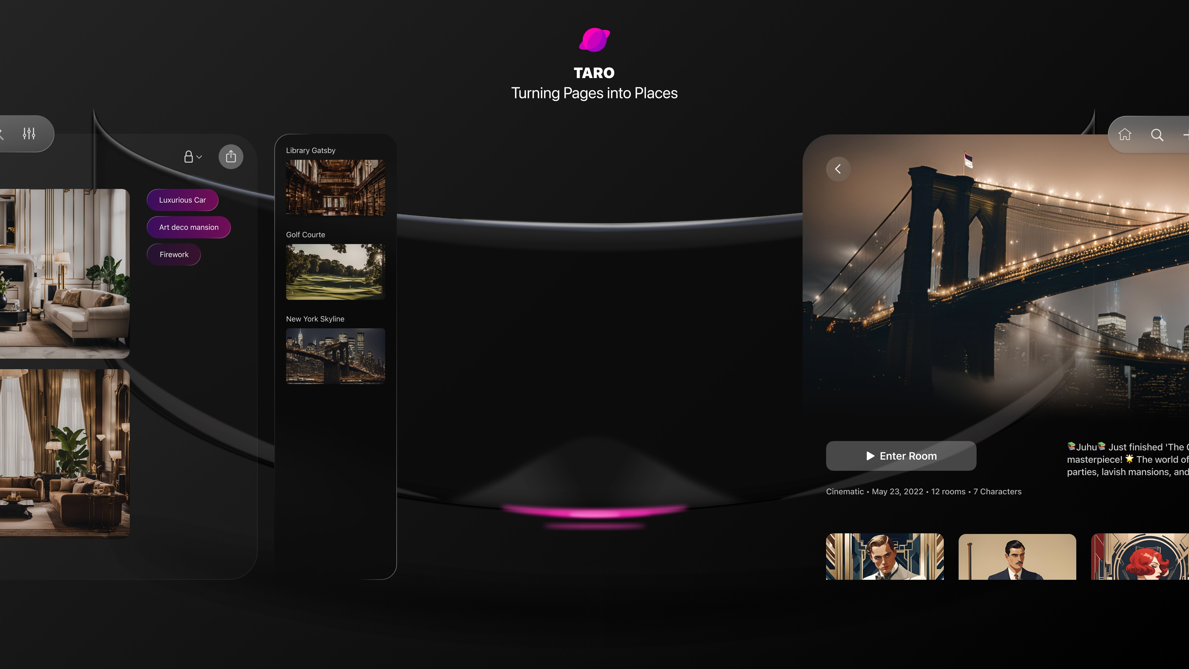 →Marie Köhle →Noah KirschgensIn diesem Projekt wird der Buchmarkt sowie die Leseerfahrung analysiert, um basierend auf aktuellen Trends und Entwicklungen Zukunftsszenarien für das Jahr 2035 zu entwickeln. Als Ergebnis entstand die Anwendung Taro, die das Lesen durch ein immersives Erlebnis und einen Community-Ansatz erweitert.