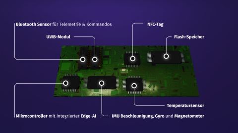 Mikrocontroller mit integrierter Edge-AI Der Mikrocontroller bildet das „Gehirn“ des Sensor Packs. Hier werden alle Sensordaten zusammengeführt und bereits direkt im Werkzeug ausgewertet. Durch integrierte Edge-AI können Muster erkannt werden – etwa Überlastungen, Fehlbedienungen oder ungewöhnliche Nutzungsprofile – ohne dass Rohdaten permanent an externe Systeme gesendet werden müssen. → Ergebnis: schnelle Reaktionen, weniger Datenverkehr, mehr Datenschutz.